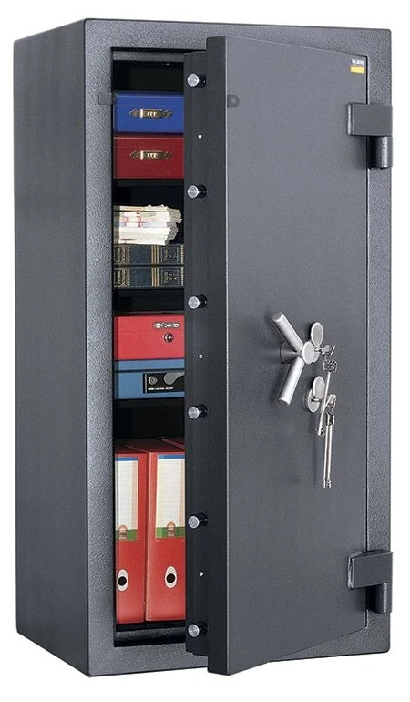 На дверь устанавливается сразу два сейфовых замка высокого класса: электронный PS 610/E36 и ключевой KABA MAUER, производимый в Германии. К замку прилагаются 3 ключа.
